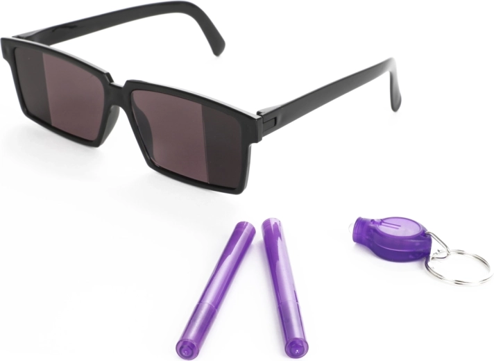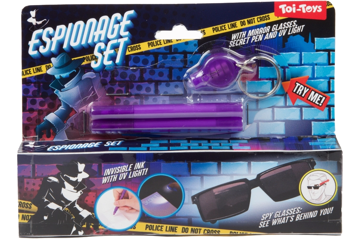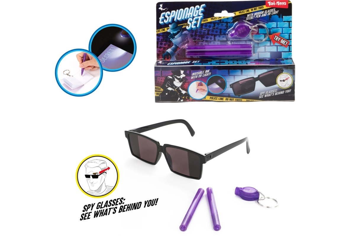 Con este set de espía, los niños se convertirán en maestros de las misiones secretas. Los mensajes escritos con tinta especial solo se ven bajo luz UV, así que cada aventura será aún más emocionante. Las gafas con visión trasera permiten a los pequeños espías observar discretamente lo que ocurre detrás de ellos.