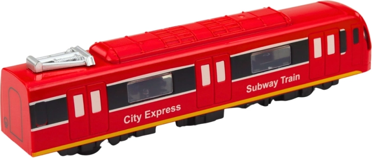 El realista tren de metro rojo City Express encantará a los niños con luces y sonidos, puertas abatibles y una fabricación resistente de plástico. Sus dimensiones compactas son ideales para jugar en casa, con un diseño moderno y los rótulos Subway Train y City Express.