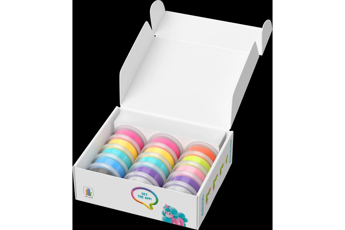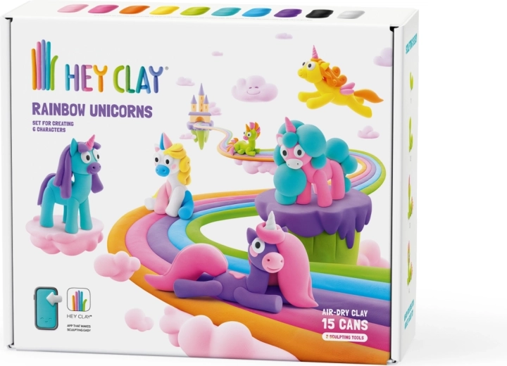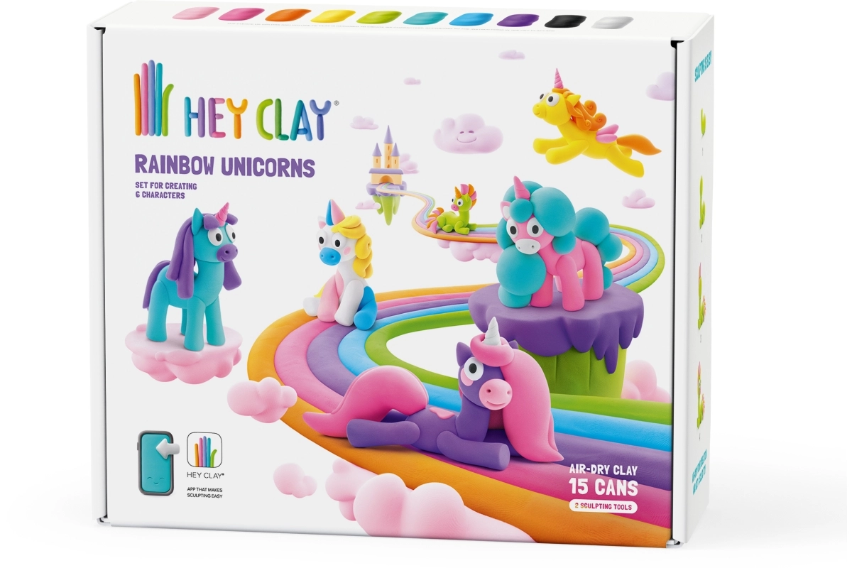 El set Hey Clay – unicornios arcoíris es una divertida puerta de entrada al mundo del modelado para pequeños y grandes creadores. La masa blanda, suave y fácil de moldear en colores brillantes se endurece al aire tras finalizar, para que los niños puedan conservar y exhibir sus creaciones.