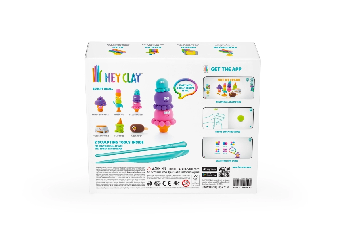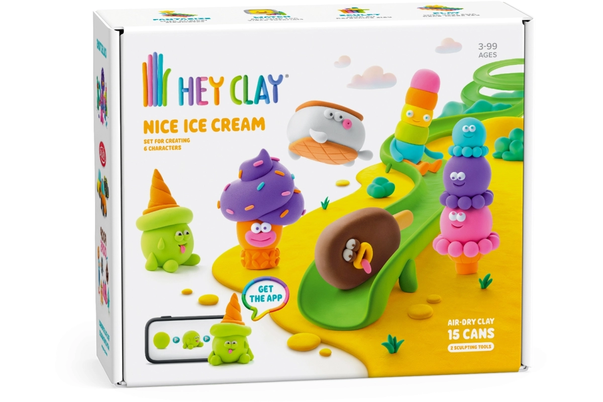 Descubre la diversión de crear con el set HEY CLAY Helado, donde los niños fabrican paso a paso divertidas figuras de helado. El paquete incluye 15 botes de masa ligera que se endurece al aire, 2 herramientas de modelado y acceso a la aplicación móvil con instrucciones sencillas. Ideal para el desarrollo de la creatividad, la imaginación y la motricidad fina: una actividad limpia, divertida y segura para niños a partir de 3 años.