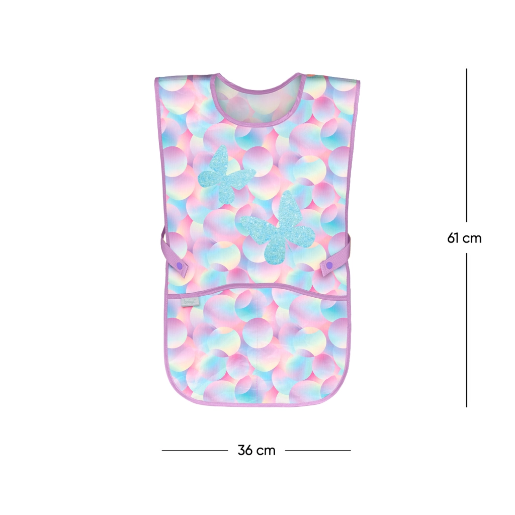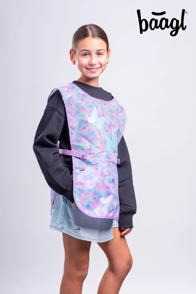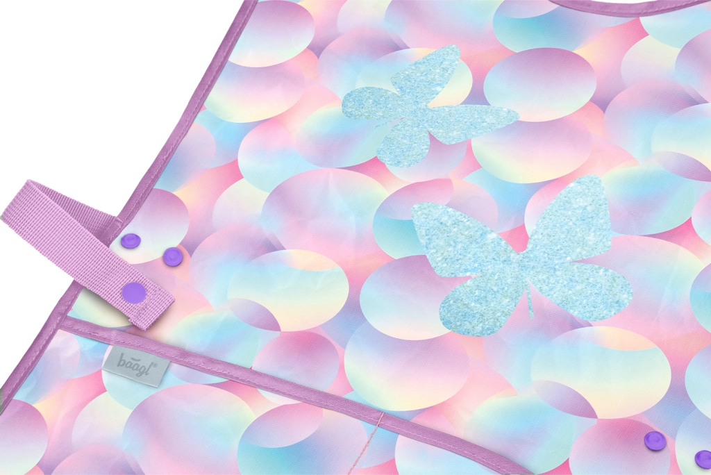Permite que los niños creen con libertad sin preocuparse por las manchas. El delantal infantil BAAGL Candy, con un suave diseño pastel y mariposas, es ideal para educación artística, trabajos manuales y manualidades en casa. Su superficie lisa y resistente se limpia con facilidad y se seca rápido, quedando lista para el siguiente uso en un momento.
