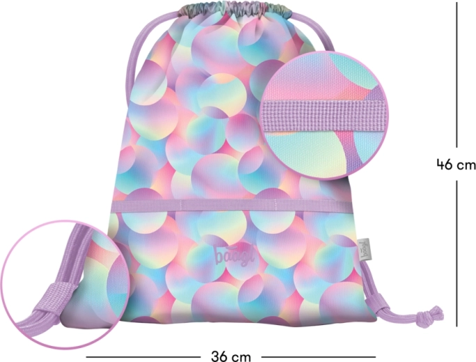 La estilosa bolsa Baagl Candy con estampado bubble en tonos pastel es un complemento estupendo para niños y adultos. Gracias a su tejido resistente, soporta el uso diario y se limpia con facilidad. Los cordones dobles garantizan un cierre rápido y, al mismo tiempo, un porte cómodo como mochila.