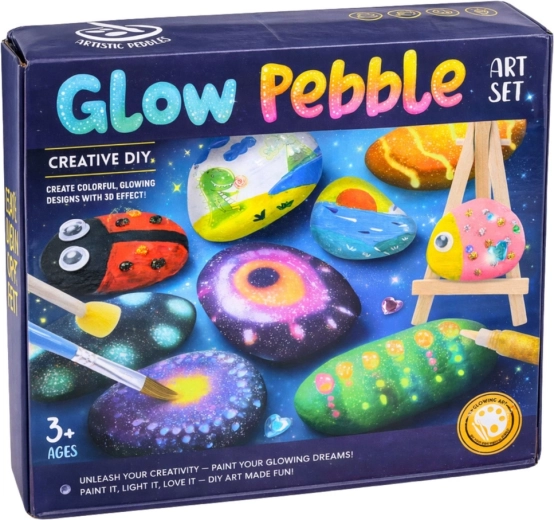 Este versátil set incluye todo lo que los niños necesitan para pintar y decorar piedras lisas: desde pinturas acrílicas hasta pinceles y esponjitas, además de accesorios brillantes. Tras exponerse a la luz, las creaciones se iluminan suavemente gracias a las pinturas fosforescentes y se convierten en una mágica decoración para la habitación infantil.