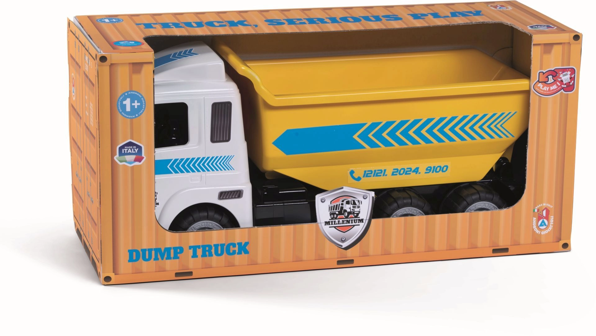 La calidad italiana, los materiales seguros y la longitud de 48 cm hacen de este camión un compañero fiable para horas de diversión. Excelente para el desarrollo de la motricidad fina y gruesa, la coordinación y el pensamiento lógico en tareas de “construcción”.