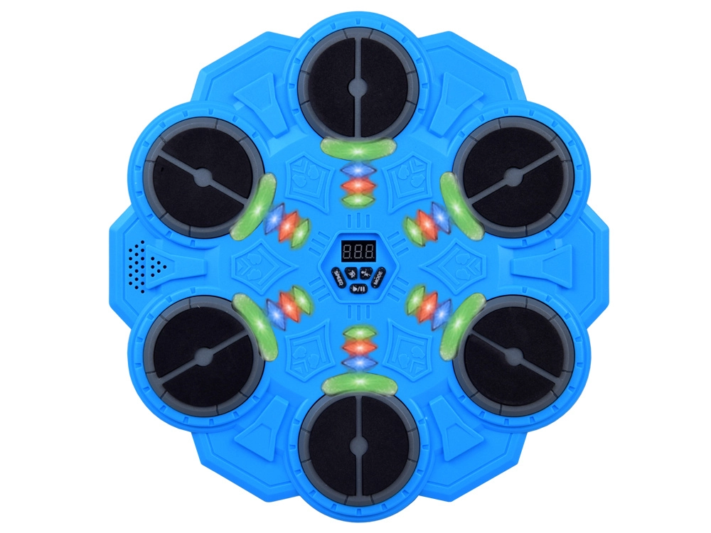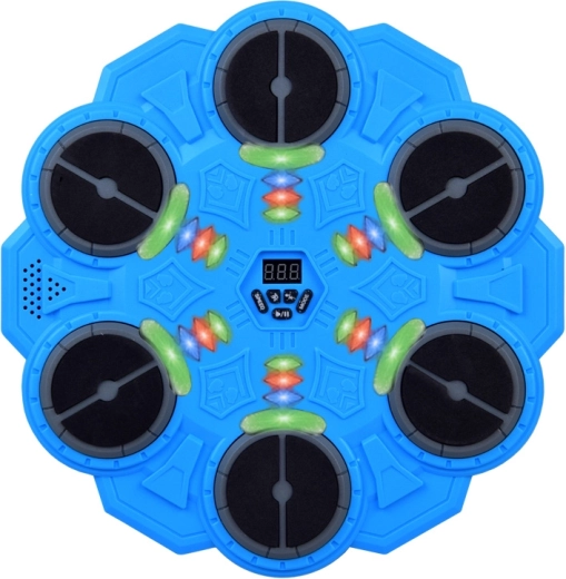 Convierte la habitación infantil en un mini estudio de entrenamiento. El panel redondo con seis zonas blandas de golpeo ilumina los objetivos en distintas secuencias que el niño debe alcanzar lo más rápido posible. Los coloridos efectos de luz LED y el contador de aciertos aportan un toque competitivo, mientras que los sonidos de golpes y el acompañamiento musical mantienen la motivación incluso durante sesiones más largas.