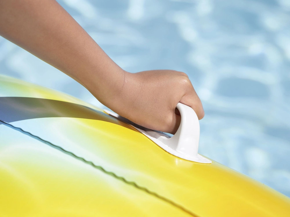 Dos asas integradas facilitan subir, sujetarse y maniobrar en el agua: los niños se sienten más seguros y confiados.