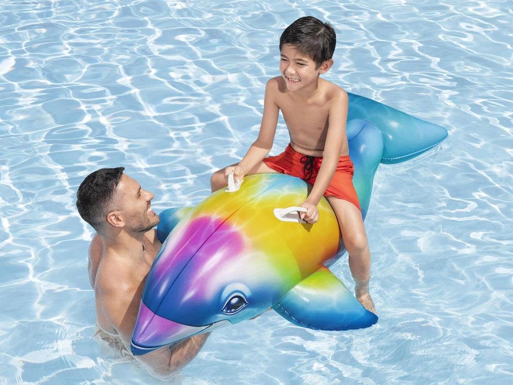El delfín para montar BESTWAY es una opción ideal para la diversión acuática de los niños. Gracias a sus dos asas robustas, subirse y sujetarse en movimiento es fácil y seguro, mientras que las dos cámaras de aire independientes aumentan la estabilidad en la superficie del agua. El material de PVC de calidad resiste el uso diario y contribuye a una larga durabilidad.