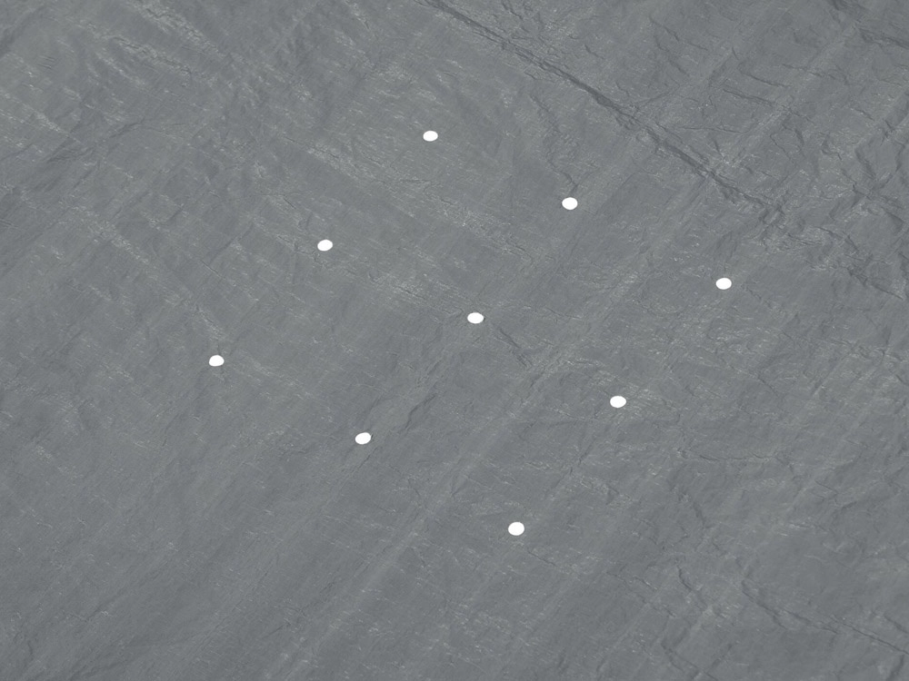 Los prácticos orificios de desagüe evitan la acumulación de agua de lluvia sobre la lona y facilitan la manipulación.