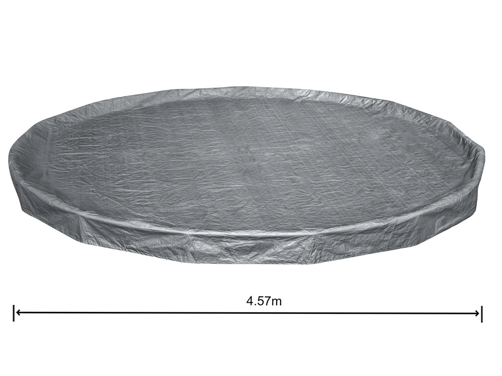 Resistente lona de cobertura para piscina con un diámetro de 4,57 m que protege el agua de hojas, hierba y suciedad. Está fabricada con material reforzado con protección UV, cuenta con un sistema de ajuste resistente al viento para una sujeción firme y orificios de drenaje que evitan la acumulación de agua de lluvia. Gracias a la tecnología Polar‑Shield soporta temperaturas bajas de hasta −25 °C.