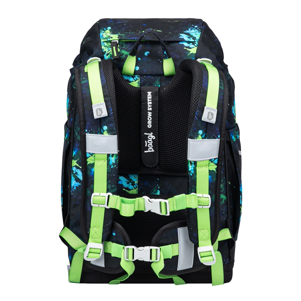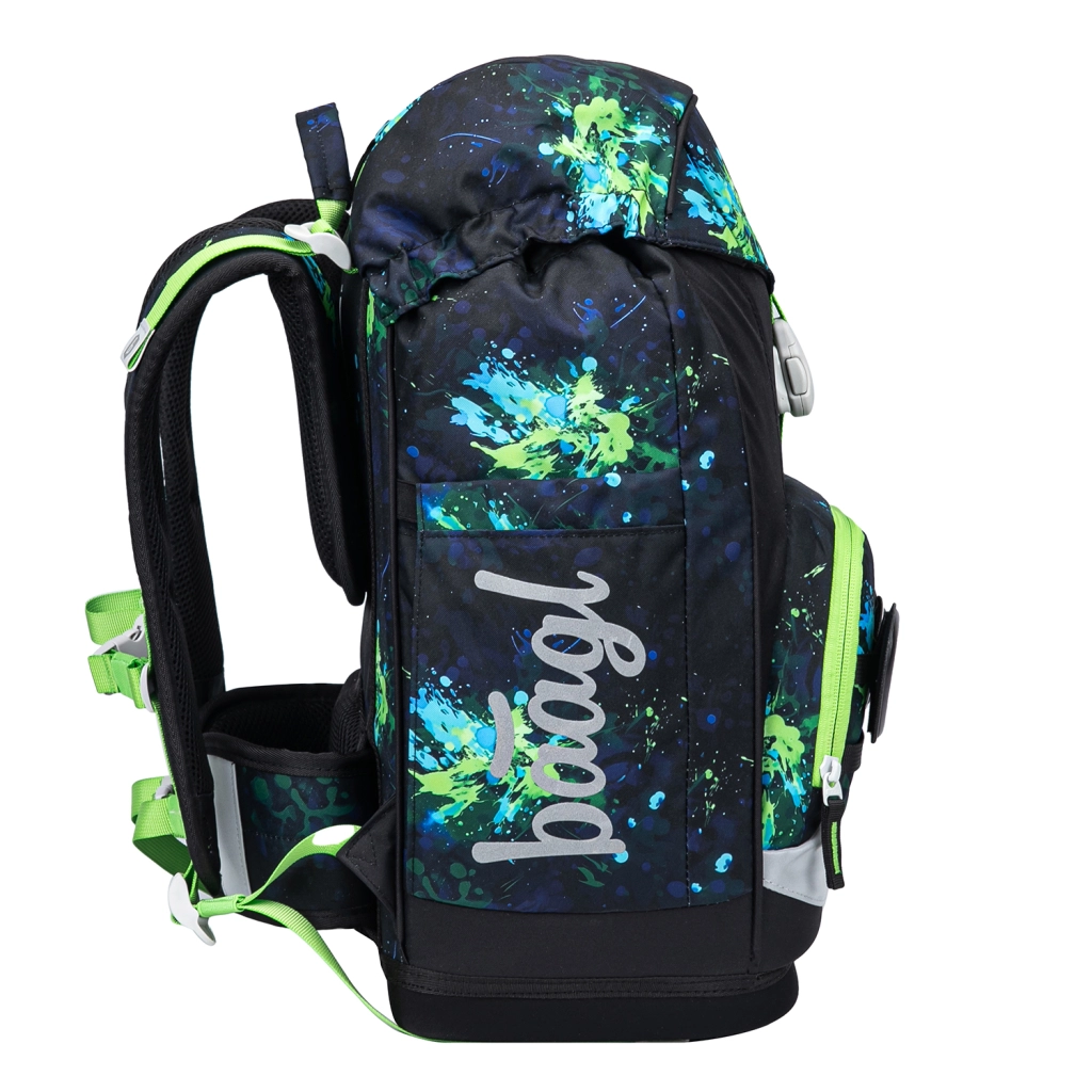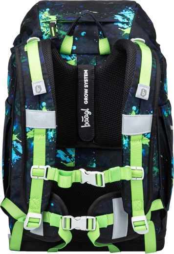 Los detalles prácticos facilitan cada día escolar: la solapa magnética permite una apertura sencilla, el compartimento principal con organizador y placas plásticas protectoras para cuadernos mantiene el contenido en orden, mientras que el bolsillo térmico frontal conserva el almuerzo fresco por más tiempo. No faltan elementos reflectantes para una mejor visibilidad y la posibilidad de personalización gracias a insignias intercambiables Baaglies.
