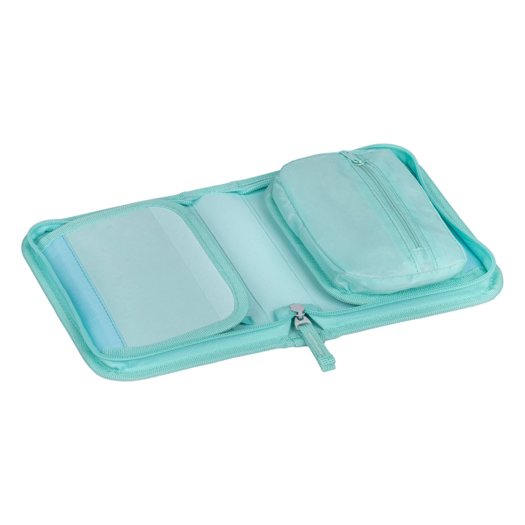 Dos solapas, gomas elásticas firmes y un bolsillo para pequeños objetos mantienen todo exactamente en su lugar. La estructura desplegable facilita la rápida orientación del contenido.