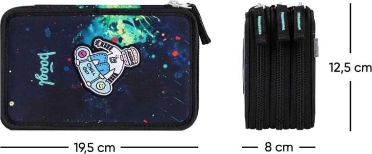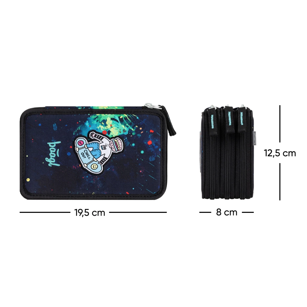 ¿Busca un estuche escolar espacioso y resistente? El estuche de tres pisos Baagl Chill GRS proporciona espacio suficiente para lápices de colores, rotuladores, bolígrafos y otros accesorios. Las gomas están diseñadas para alojar incluso materiales de escritura más gruesos, y el lomo reforzado facilita la manipulación diaria al cerrar.