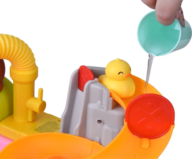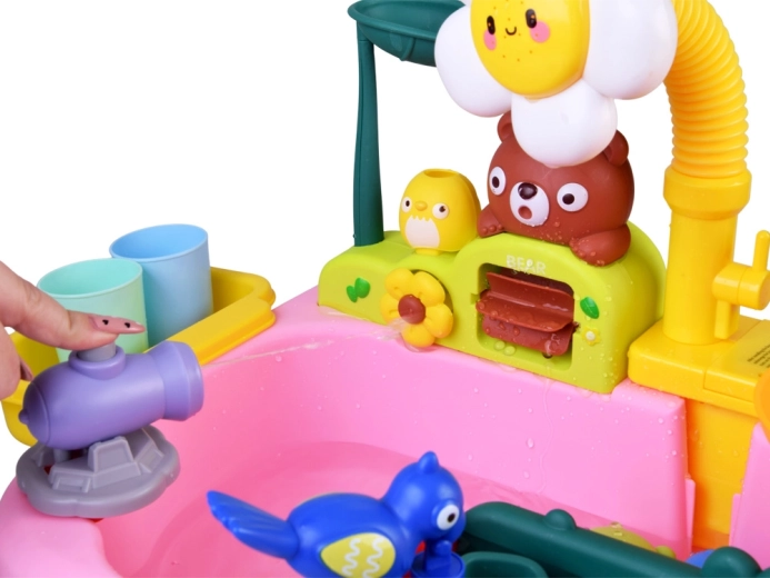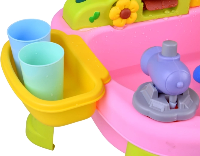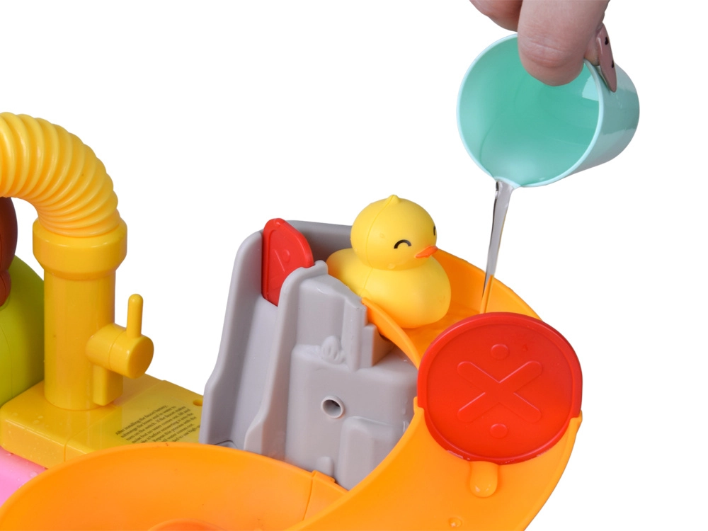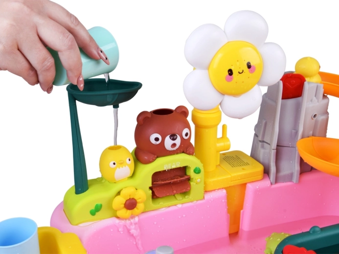 La manguera flexible con rociador de flor convierte la mesa en un pequeño parque acuático. Los niños pueden rociar agua, hacer girar ruedas y lavar juguetes.