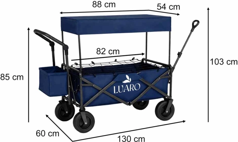 Con el carrito LUARO obtendrás un ayudante fiable para excursiones familiares, días de playa y acampadas. El resistente bastidor de acero y la duradera tela Oxford 600D garantizan estabilidad y larga vida útil, mientras que las grandes ruedas todoterreno se desenvuelven en arena, hierba y pavimento. Puedes tirar o empujar el carrito, y gracias a las asas de altura ajustable se adapta cómodamente a tu estatura.