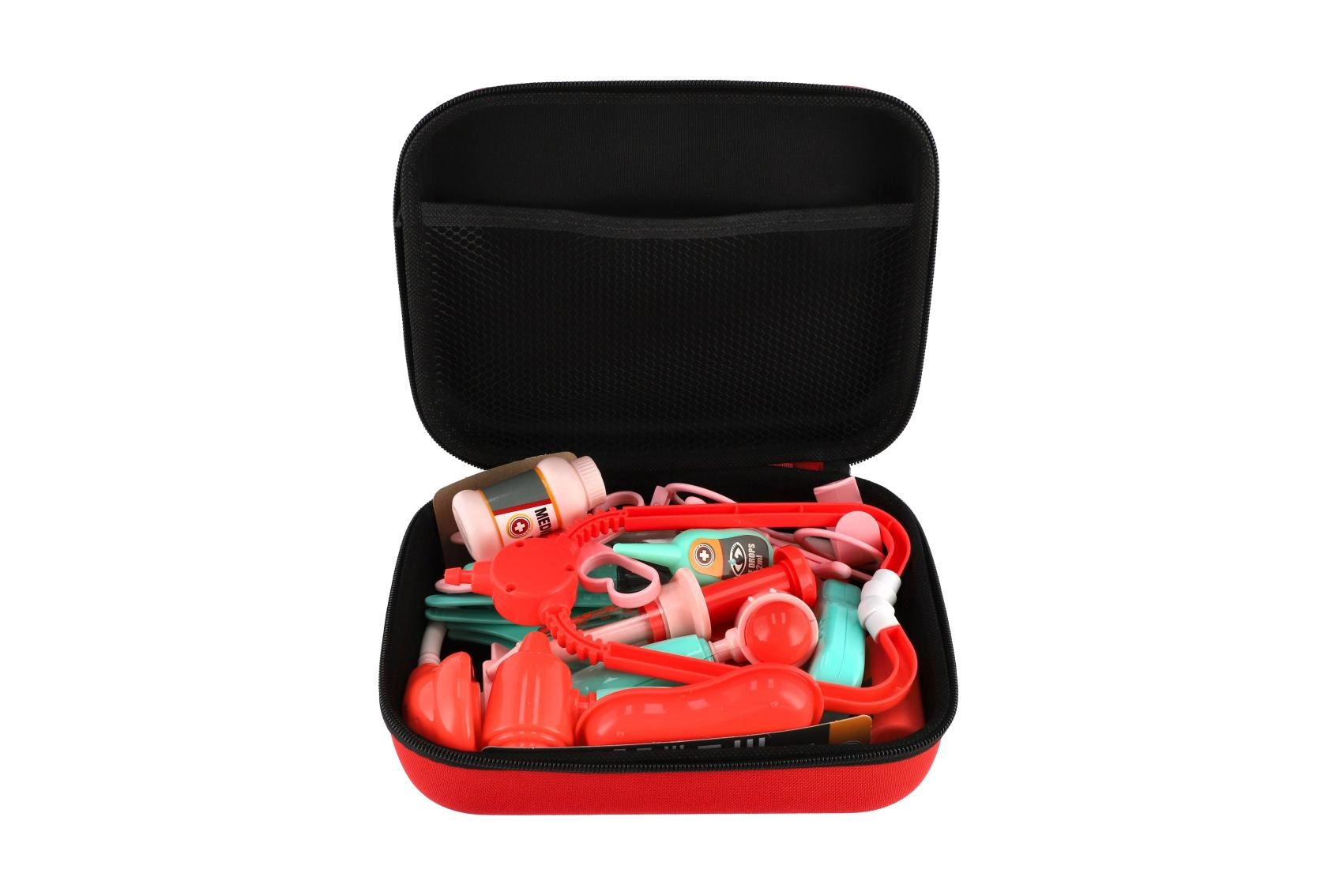 Divertido juego de médico infantil en un maletín resistente que aporta todo lo necesario para jugar a la consulta. Los niños pueden probar a examinar a los pacientes, tratar pequeñas “lesiones” y medir la temperatura. El práctico maletín garantiza orden y fácil transporte, mientras que los abundantes accesorios fomentan la imaginación y las habilidades sociales y ayudan a reducir el miedo al médico.