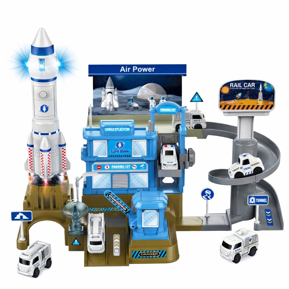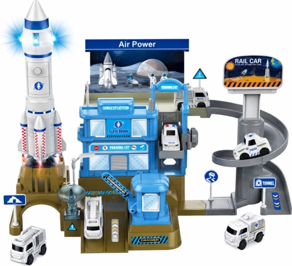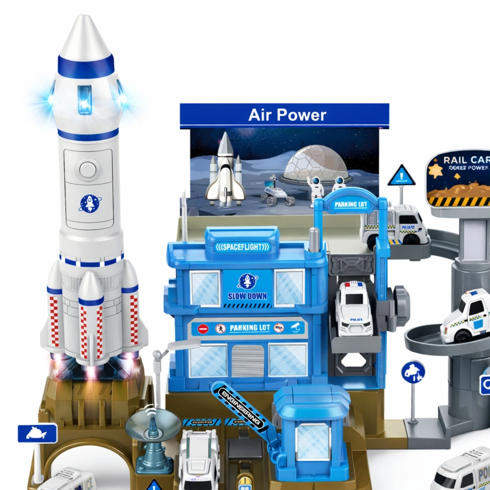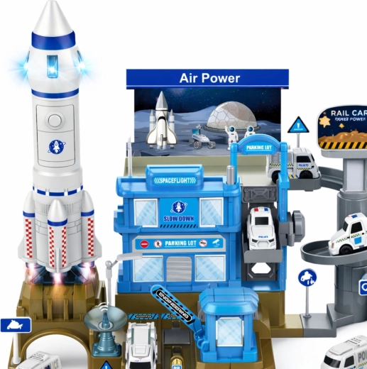El centro del set es el cohete con luces y sonidos (alimentación 2× AAA), que simula un despegue real. Plástico de alta calidad, diseño espacial moderno y una gran cantidad de accesorios (vehículos, señalización, puertas) hacen de este juguete un regalo ideal para pequeños aficionados a la tecnología y al cosmos. El producto cumple con las normas europeas de seguridad CE.