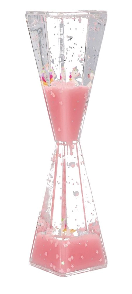 Este reloj de arena líquido transparente con relleno rosa y purpurina ofrece un flujo suave y continuo de gotas desde la cámara superior a la inferior. Crea un espectáculo relajante que ayuda a calmar la mente durante el trabajo, el estudio o el descanso.