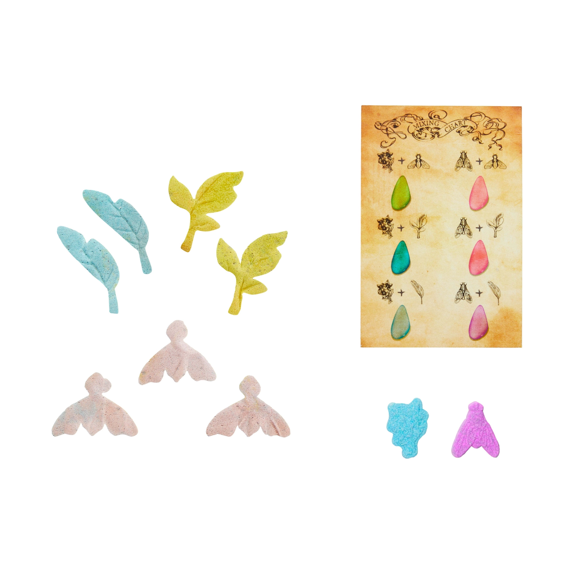 Arroja pastillas efervescentes aromáticas y confeti soluble en el caldero y observa el espectacular burbujeo. Ideal para el juego sensorial y creativo.