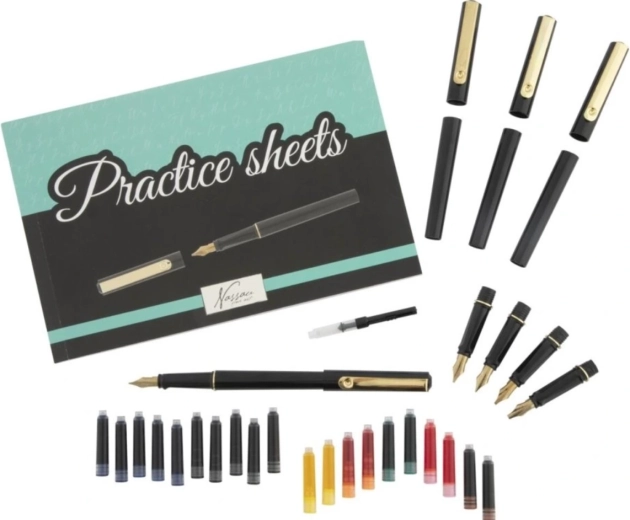 Descubre el arte de la caligrafía con el completo juego de caligrafía NASSAU. Este set versátil incluye 5 plumas, 5 plumillas intercambiables y 20 cartuchos de colores para una escritura fluida, lettering y proyectos creativos. Ideal para principiantes y avanzados que buscan trazos elegantes y precisos sin compromisos.