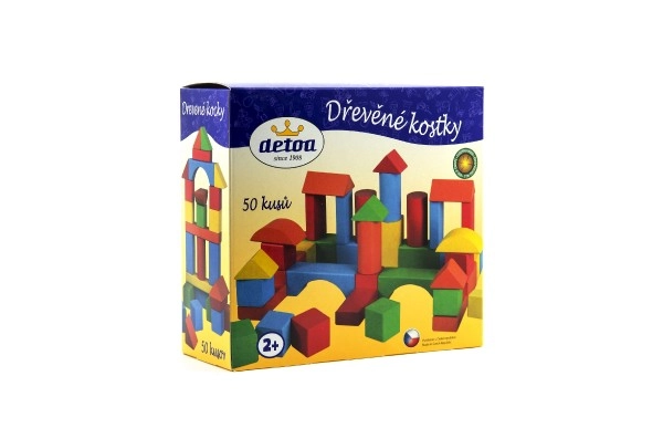 Este clásico juego de construcción de madera de la marca checa Detoa incluye 50 piezas de colores en formas básicas: cilindros, prismas rectangulares y cubos. Los niños desarrollan la coordinación mano-ojo, el pensamiento lógico y la fantasía al construir torres, casitas o puentes. El material natural y el acabado resistente garantizan una larga vida útil y un juego seguro.