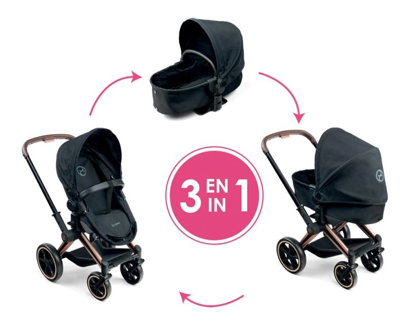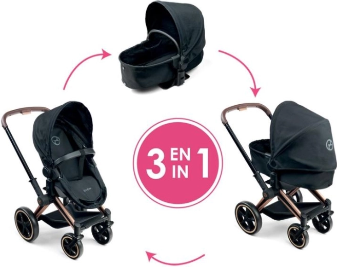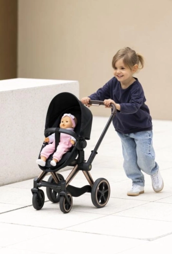 El cochecito para muñecas CYBEX Black 3 en 1 fue desarrollado en colaboración con la marca CYBEX y se basa fielmente en el icónico modelo PRIAM. Así, los niños pueden disfrutar del juego de “papás y mamás” con el estilo y la funcionalidad de un cochecito real. Gracias a su diseño bien pensado, funciona como capazo profundo, cochecito deportivo y cómoda cuna portátil.