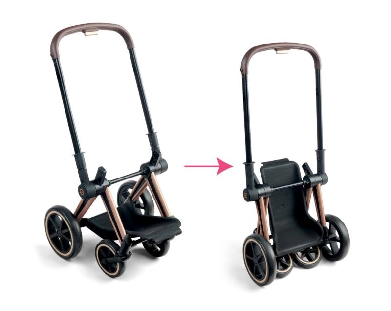Manejo ligero, abatimiento y plegado rápidos. La robusta cesta inferior guarda todo lo necesario para la salida con la muñeca.