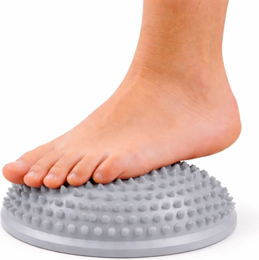 Semiesfera sensorial universal para entrenamiento del equilibrio, masaje de pies y estimulación sensorial. Las protuberancias texturizadas favorecen la circulación, activan los receptores y ayudan a la estabilización corporal. El diseño elástico y resistente con base antideslizante garantiza un ejercicio seguro en casa, en la escuela y en fisioterapia.