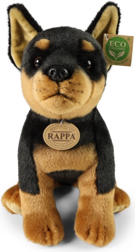 Adorable dóberman de peluche de 30 cm de la colección exclusiva RAPPA que encantará a pequeños y grandes amantes de los animales. Gracias a su elaboración manual parece como si estuviera vivo, es increíblemente suave y tiene relleno eco-friendly de materiales reciclados, seguro incluso para los más pequeños.