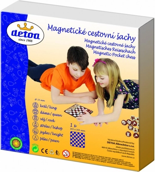 El ajedrez de viaje magnético Detoa ofrece una gran diversión para toda la familia. Este set incluye un tablero metálico de 16,5x16,5 cm que mantiene las piezas en su sitio gracias a su base magnética. Así no tendrás que preocuparte de que las figuras se muevan durante la partida.