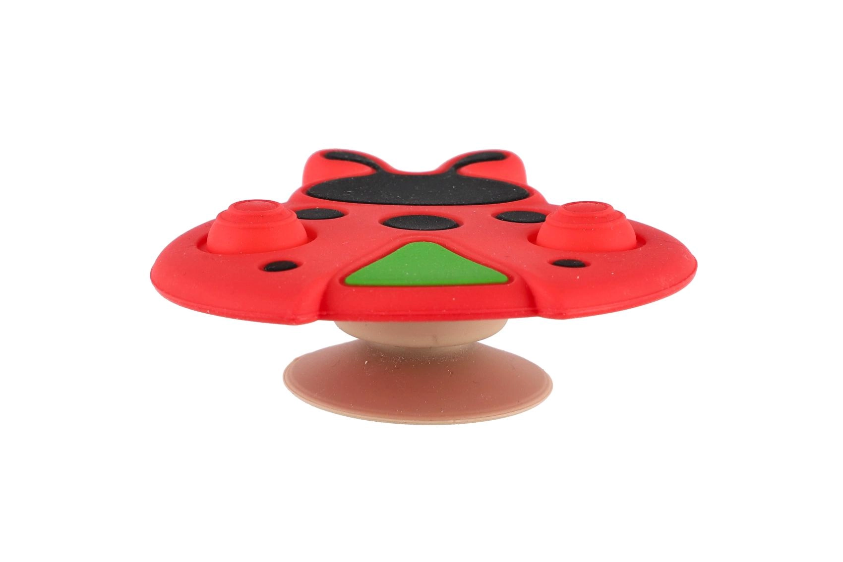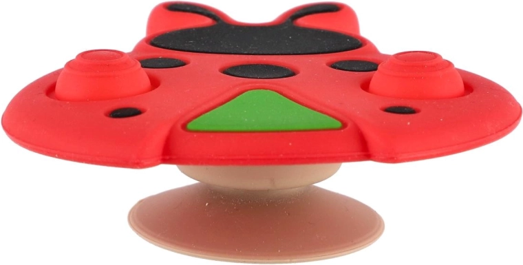 Este juguete sensorial con forma de mariquita es ideal para los primeros descubrimientos del mundo. Gracias a la combinación de silicona suave y plástico resistente, es agradable al tacto, seguro y soporta el uso diario. La ventosa permite fijar el juguete fácilmente a una mesa, trona o bañerita, de modo que se mantiene en su sitio y el bebé puede explorarlo cómodamente.
