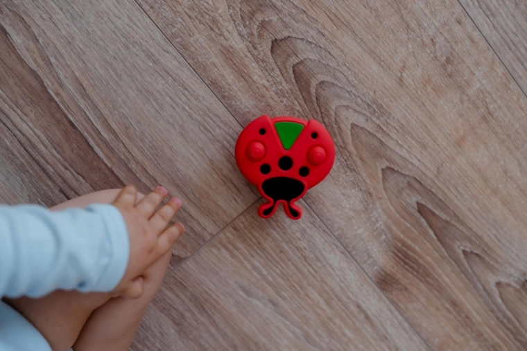 Fija la mariquita a una superficie lisa y deja que el bebé explore con seguridad sin que se caiga continuamente al suelo.