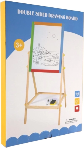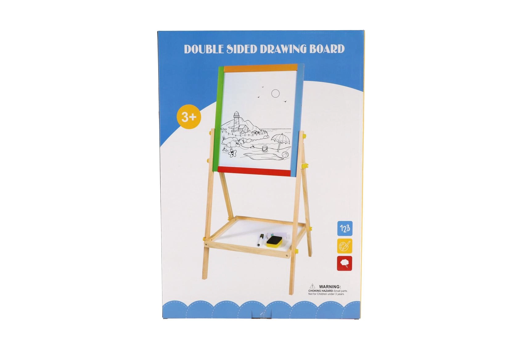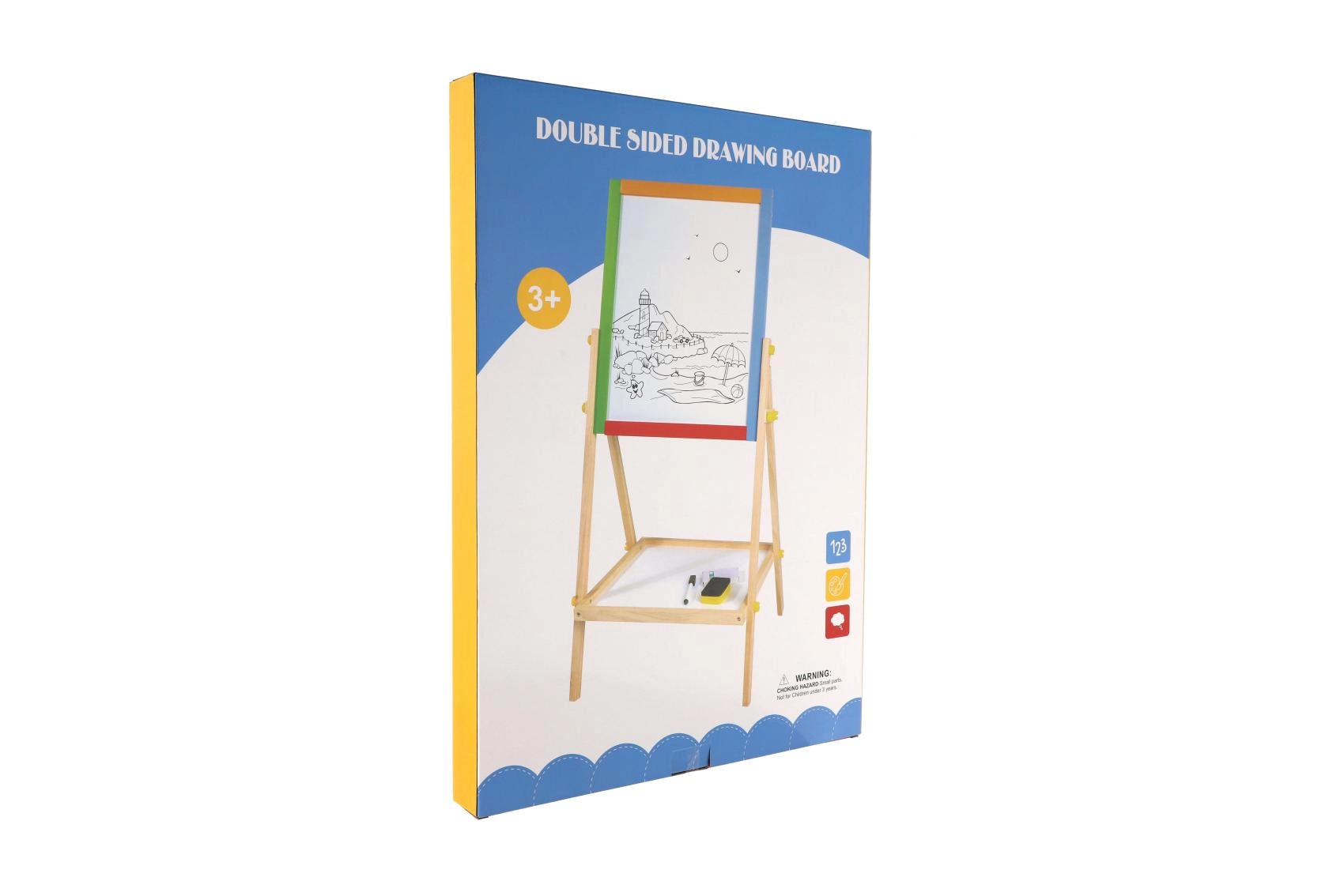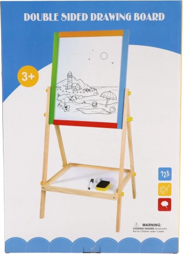 Esta pizarra de doble cara fomenta la creatividad, la motricidad fina y las primeras habilidades escolares. Los niños pueden alternar entre dibujar con tizas y escribir con rotulador, aprender letras con imanes y practicar matemáticas, todo en un solo lugar.