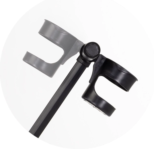 Fácil acceso y cambio de dirección gracias al asiento giratorio. Incluye portavasos y cestas de almacenamiento delante y detrás, además de capota plegable con visera para el sol.