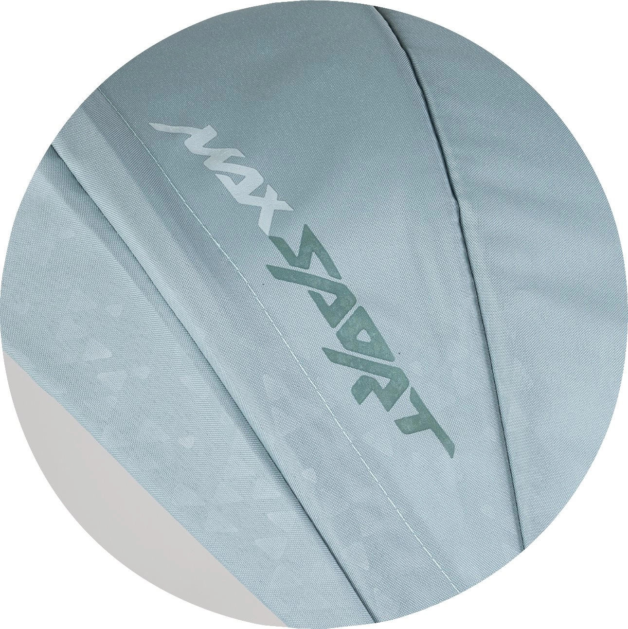 Asiento ancho y acolchado con cinturón de seguridad y parachoques protector, reposapiés abatibles y respaldo reclinable para un viaje confortable.