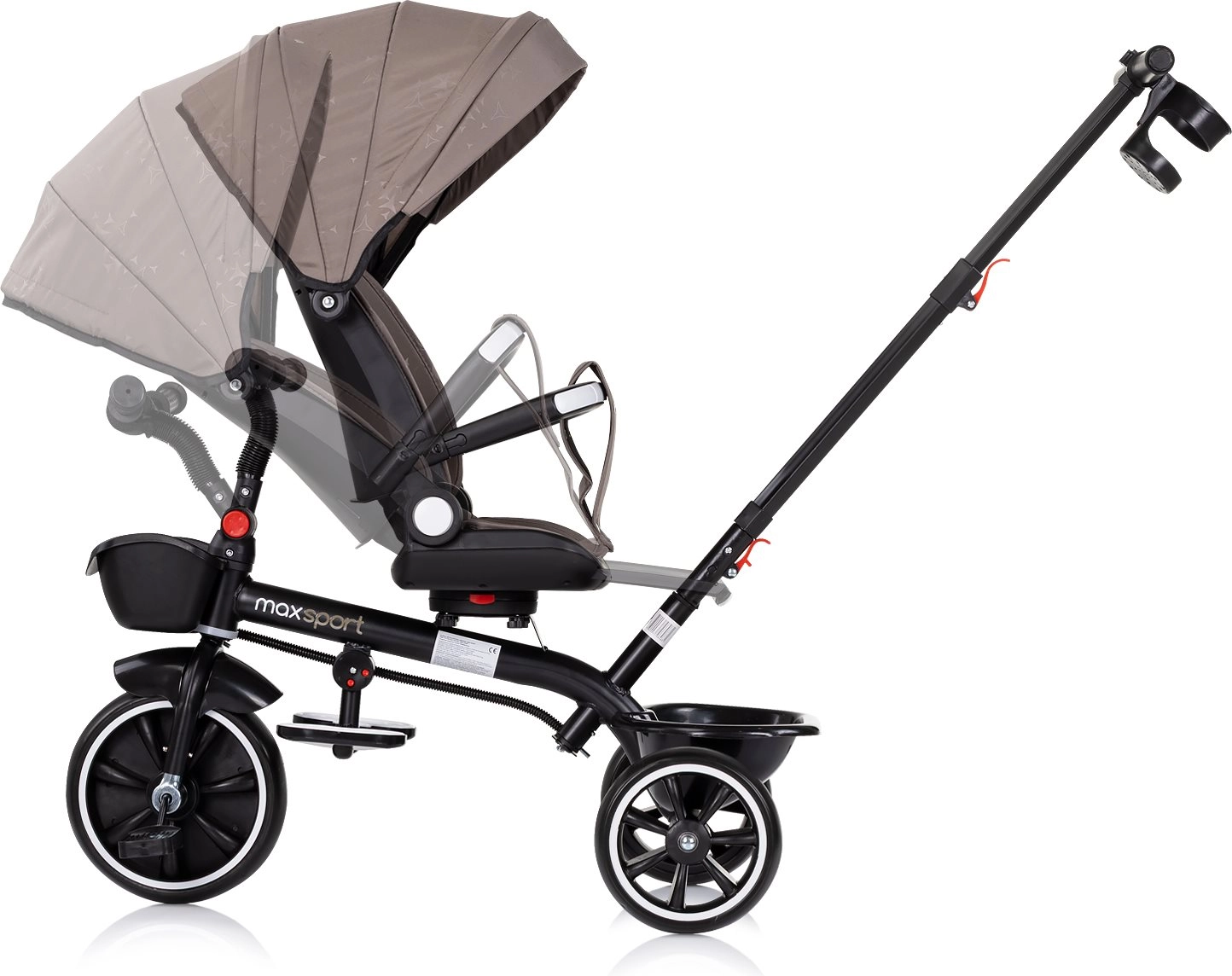 Este inteligente triciclo combina la comodidad de un cochecito con la diversión de los primeros paseos. Los más pequeños pueden viajar con la ayuda de los padres gracias al manillar largo y al equipamiento de seguridad; los mayores, pedalear por sí solos. La capota, la empuñadura parental y la barra de seguridad extraíbles permiten una rápida transformación del modo para bebés al triciclo para preescolares.