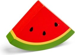 Esta rodaja de sandía de madera destaca por sus colores intensos y su acabado realista. Es ideal para la cocinita infantil, la tienda o como complemento para juegos de cocina. Favorece la motricidad fina, la imaginación y el desarrollo del lenguaje al nombrar alimentos.