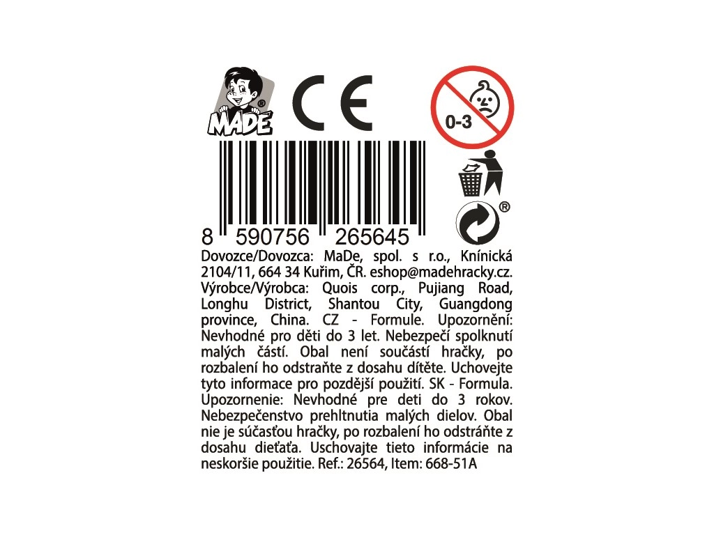 Las dimensiones compactas de 10 × 5 × 5 cm garantizan un agarre cómodo y un manejo sencillo incluso para los más pequeños. El plástico de calidad resiste el juego cotidiano en casa y durante los viajes.