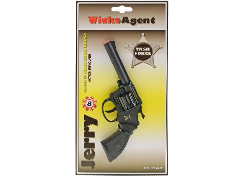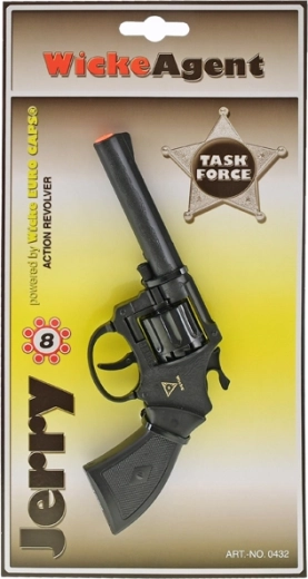 La pistola de cápsulas Jerry es una gran elección para juegos infantiles de policías y héroes del oeste. Gracias a su estructura de plástico ligera se sujeta cómodamente y es fácil de manejar, mientras que las cápsulas de 8 tiros garantizan un chasquido realista y una atmósfera emocionante en cada juego.