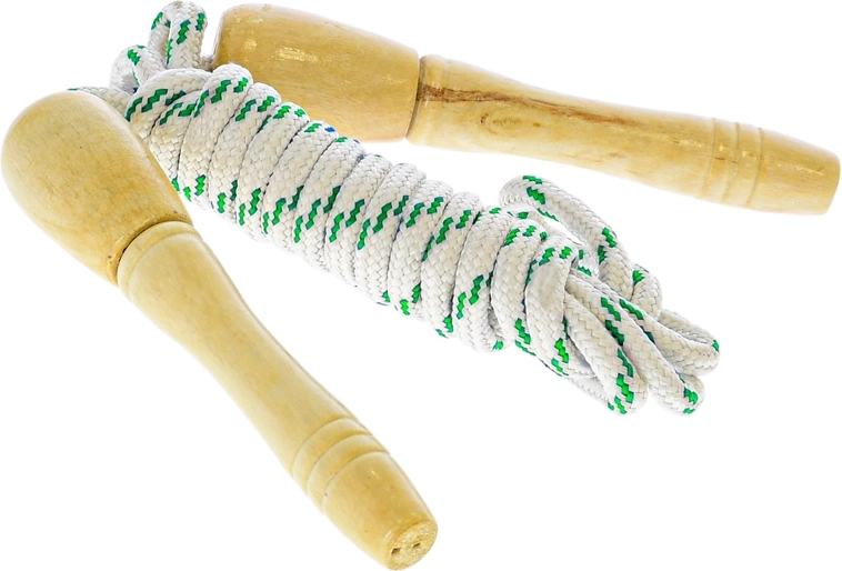 Fomenta el movimiento y la alegría de moverse con una comba de 270 cm. Gracias a sus mangos de madera ergonómicos, se adapta bien incluso a las manos más pequeñas y es apta para el uso diario. Saltar a la comba mejora la condición física, la coordinación y el equilibrio, y es una actividad excelente para el patio, el jardín o el gimnasio.