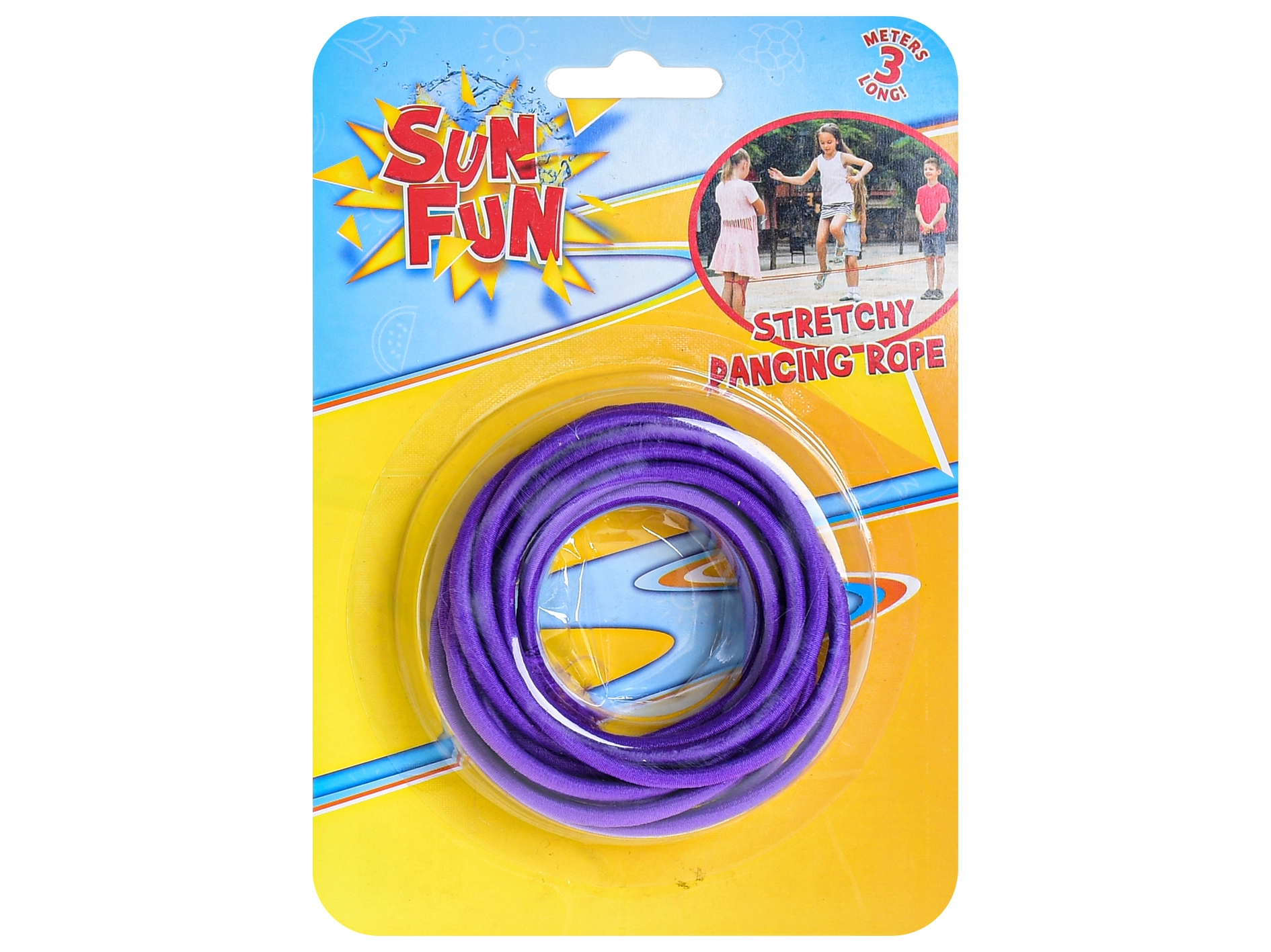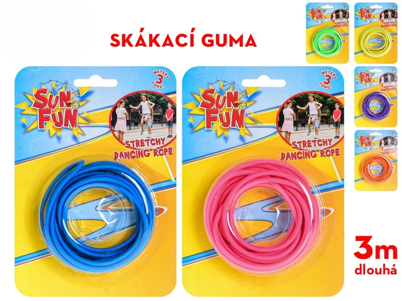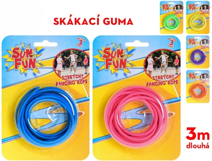 Disfruta de horas de movimiento y risas con la goma para saltar Sun Fun. Esta goma de alta calidad con una longitud de 300 cm es ideal para los juegos clásicos en el patio y el parque. Ofrece 6 colores alegres y es apta para niños a partir de 3 años, ayudando a desarrollar la coordinación, la agilidad y el espíritu de equipo.