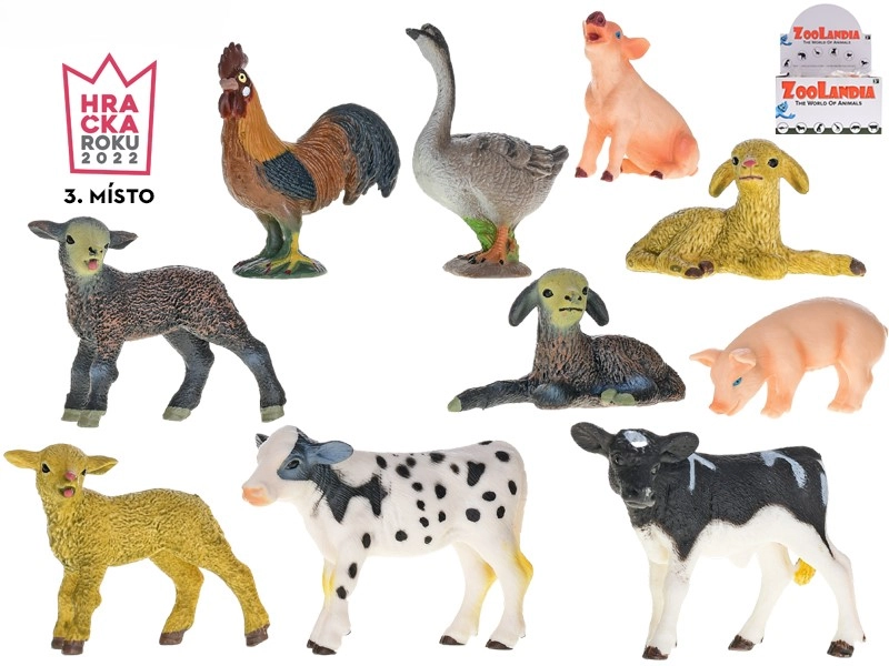 - 2× cabrito, 2× burrito, 2× cordero, 2× lechón, 2× ternero marrón, 2× ternero blanco y negro, 2× patito, 2× gansito, 1× gallito, 1× gallina