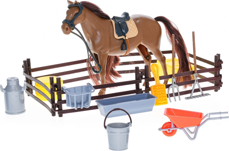 Descubre el mundo de las aventuras en la granja con el caballito de Kids Globe. La figura de 18 cm está detalladamente elaborada y acompañada de accesorios con los que los niños jugarán al cuidado real de los caballos, desde la alimentación hasta el cepillado. El juguete está hecho de plástico de alta calidad y resistencia, por lo que soporta el juego diario y los traslados frecuentes.