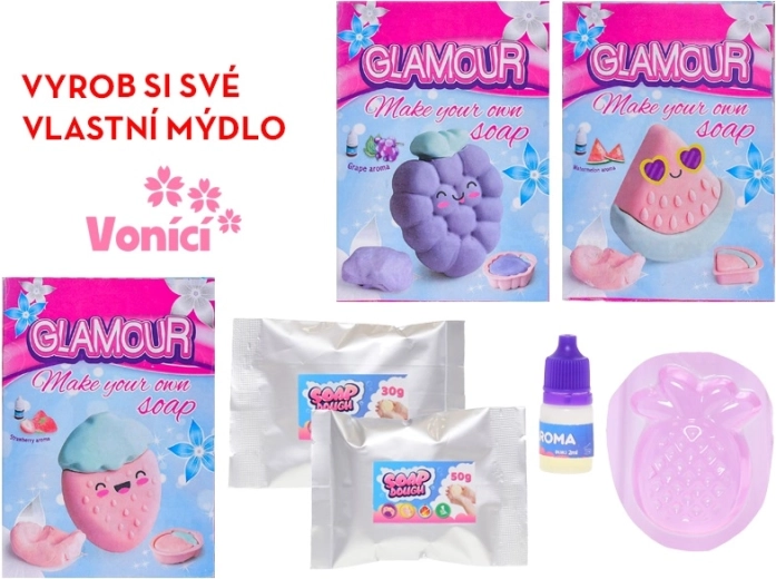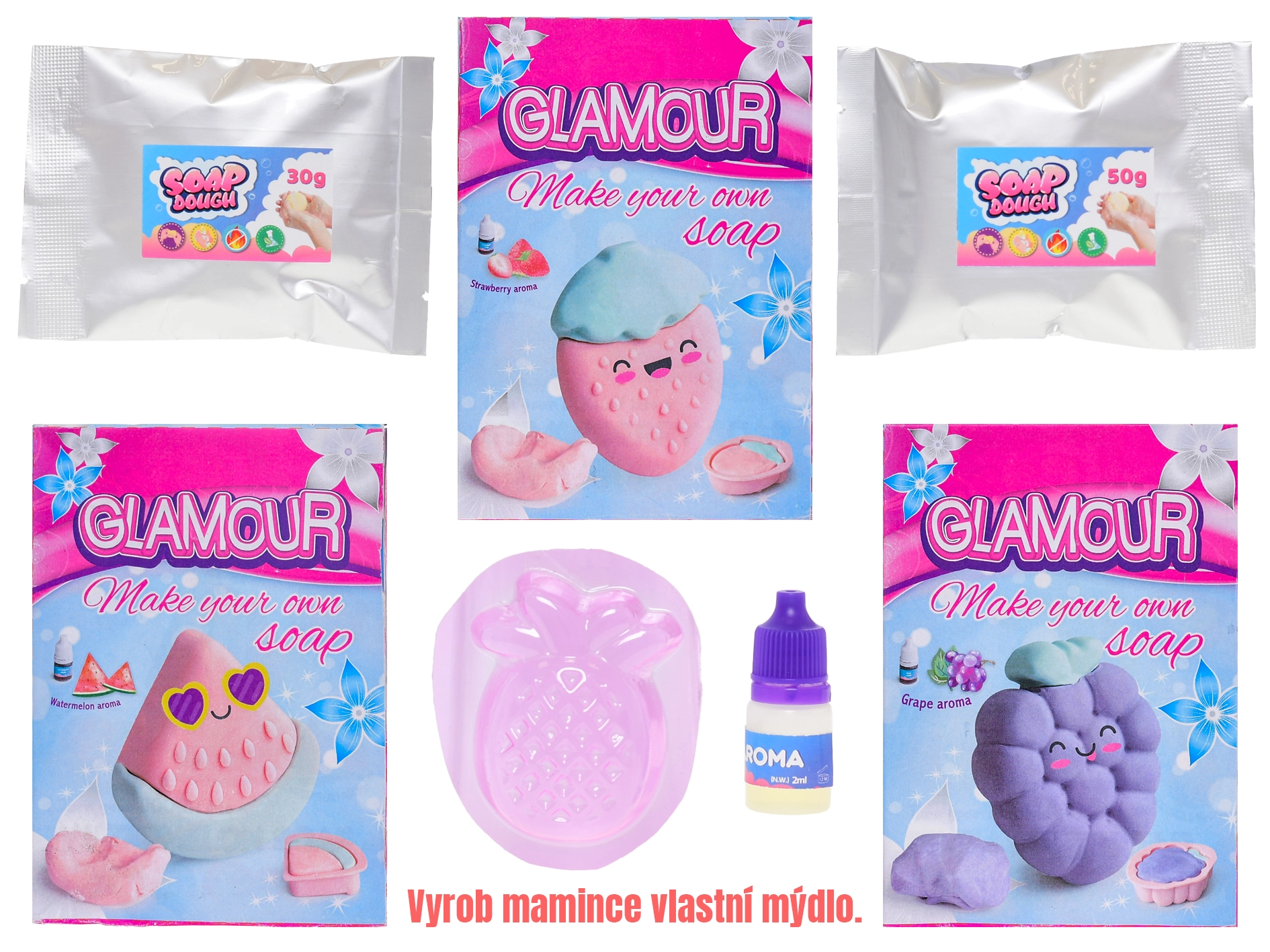 Descubre un divertido set para pequeños creadores: con la masa Glamour, los niños pueden fabricar fácilmente su propio jabón perfumado. El set fomenta la creatividad y la motricidad fina, ofrece cuatro fragancias frutales: piña, uva, sandía y fresa, y es adecuado para niños a partir de 4 años.