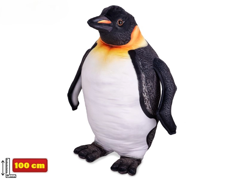 El pingüino de pie de 100 cm cautiva con detalles precisos: coloración en blanco y negro con pico y patitas en un suave tono naranja que le aportan un aspecto auténtico. Gracias a su peluche suave, seguro y resistente, es agradable al tacto y está listo para el juego diario.