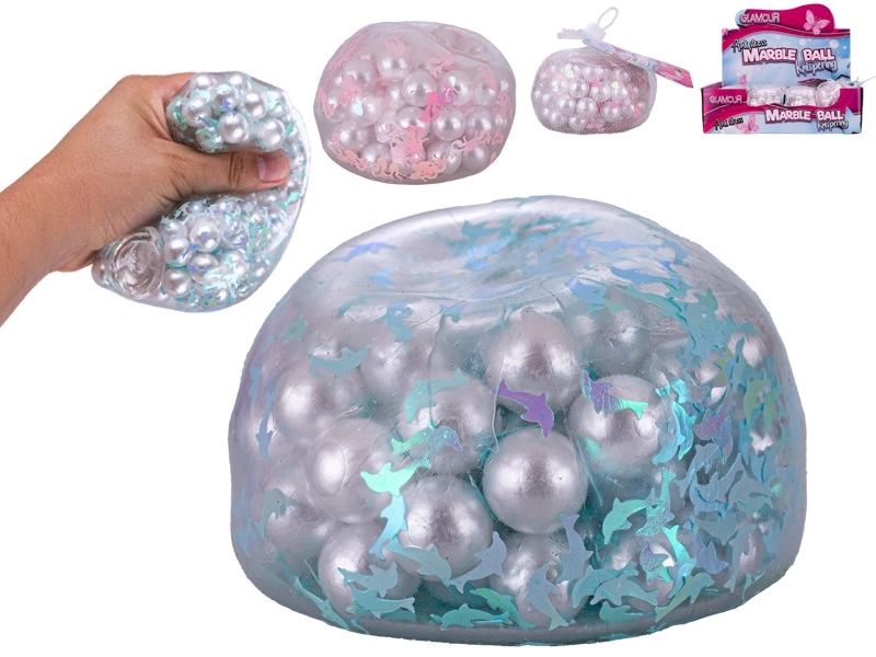 La pelota antiestrés glamour encantará tanto a niños como a adultos. Su acabado brillante y tres atractivos motivos —corazones, delfines y sirenas— la convierten en una herramienta divertida y a la vez reconfortante para el juego y la relajación cotidiana. Al presionarla, las bolitas crujientes del interior se desplazan, crepitan suavemente y generan un sonido agradable que ayuda a la concentración y a relajarse.