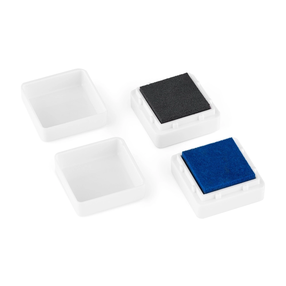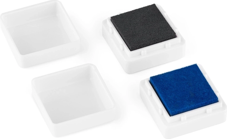 - 2× almohadilla de tinta (azul, gris oscuro)