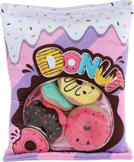 El bolso de peluche, suave al tacto, no solo sirve como funda, sino también como organizador práctico: los niños aprenden a guardar los juguetes, a clasificar y a mantener el orden. Las texturas y formas de las donas fomentan la percepción táctil, el desarrollo de la motricidad fina y la coordinación ojo–mano desde una edad temprana.