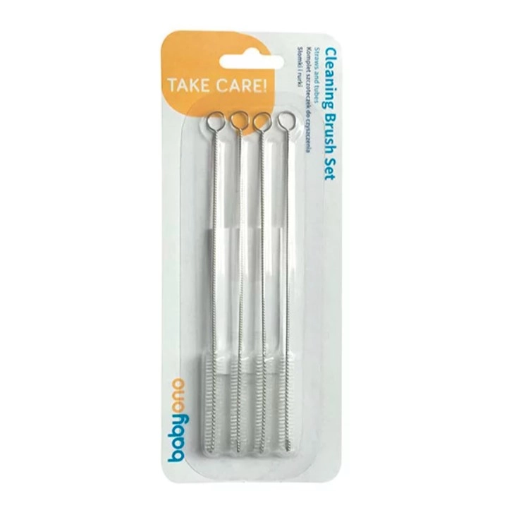 Mantén las pajitas perfectamente limpias con el set de 4 cepillos BabyOno. Están diseñados para eliminar eficazmente la suciedad de las partes estrechas y curvadas de las pajitas que se utilizan en vasos de entrenamiento y botellas deportivas.