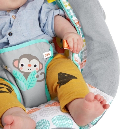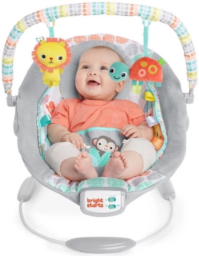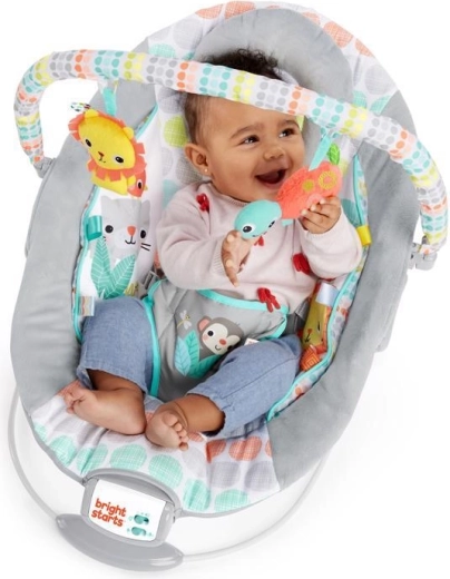 La hamaca Bright Starts Whimsical Wild está diseñada para el confort y la diversión diaria. El acolchado suave, el reposacabezas desmontable y el reductor integrado para recién nacido proporcionan el soporte correcto. Las vibraciones calmantes y las 7 melodías con volumen ajustable ayudan a tranquilizar y dormir, mientras que el temporizador de 15 minutos ahorra batería.