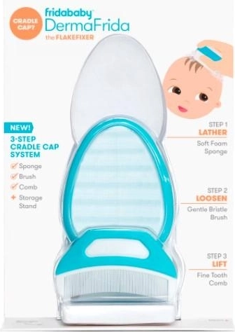 Descubre una solución suave para el cuero cabelludo del bebé: FRIDABABY DermaFrida FlakeFixer es una herramienta inteligente de 3 pasos que ayuda a ablandar, liberar y peinar las escamas causadas por la dermatitis seborreica. Apto desde el nacimiento, con esponja de espuma suave, cepillo delicado y peine de púas finas. Incluye un soporte con ventosa para un almacenamiento higiénico.
